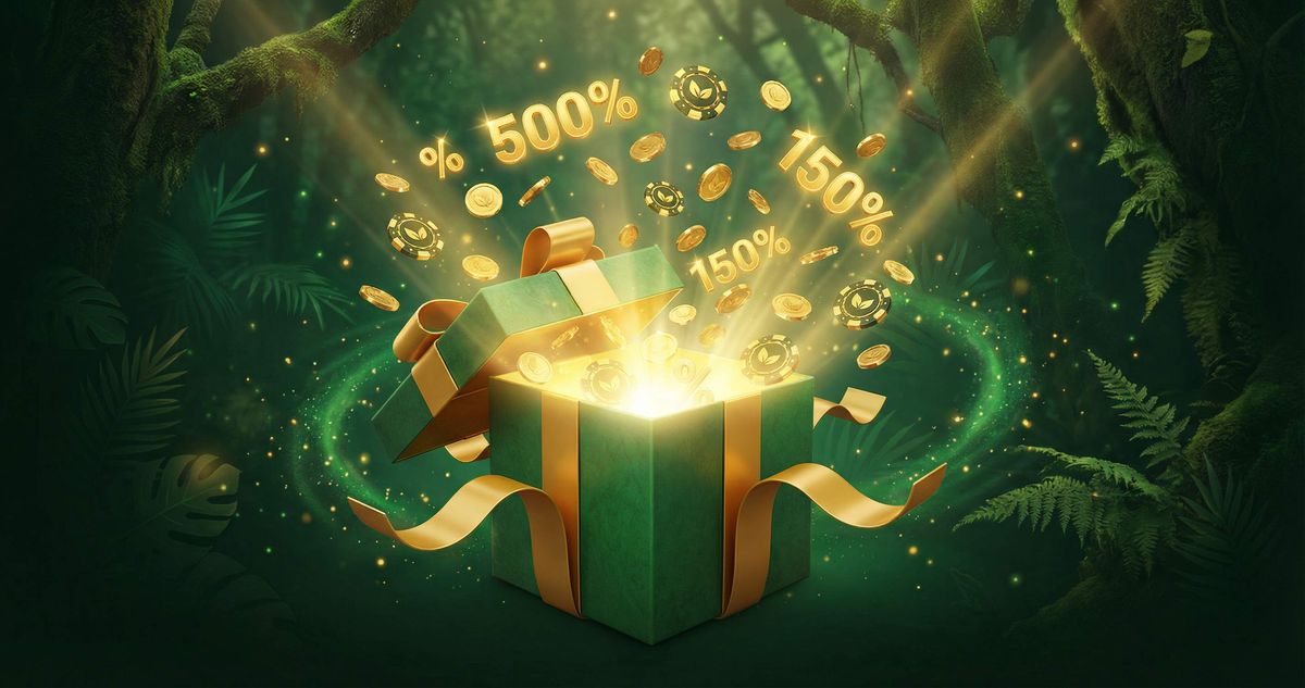 El más común. Depositas una cantidad y el casino te acredita un porcentaje adicional como saldo de bonificación. 1Win lleva esto al extremo con su 500% repartido en cuatro depósitos — el primero recibe 200%, el segundo 150%, el tercero 100% y el cuarto 50%. JugaBet concentra todo en un solo depósito con su 400% + 100 giros. La trampa: ese saldo de bonificación no es retirable directamente. Necesitas cumplir el wagering para convertirlo en dinero real.